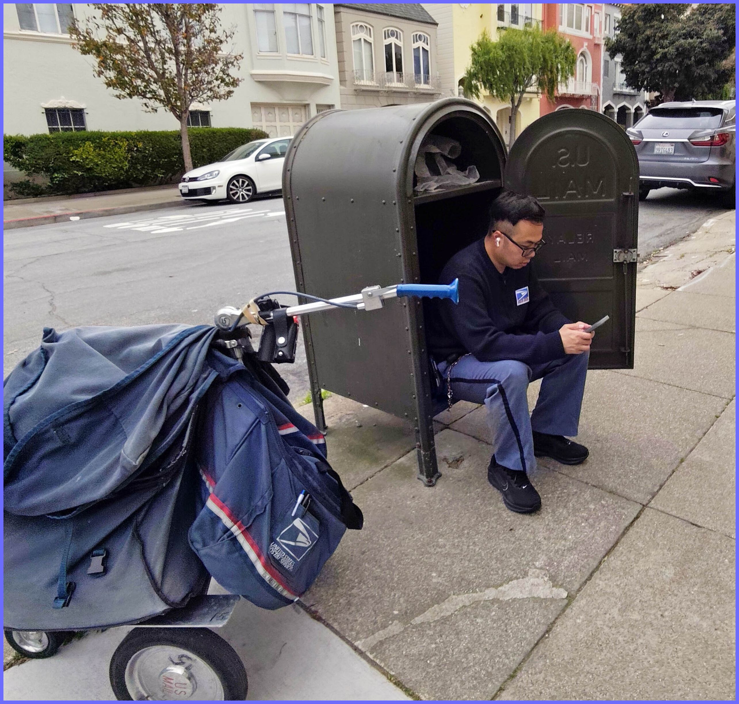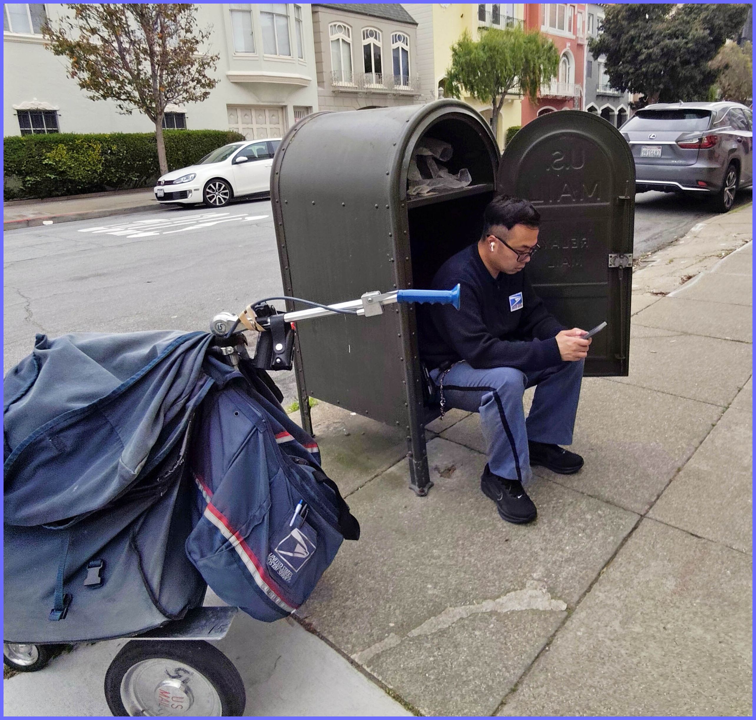 | 3rd place prize, March 2026. Happened on this funny sight on a walk in my neighborhood. The title is what I like to imagine he is typing on the first day of his new job.